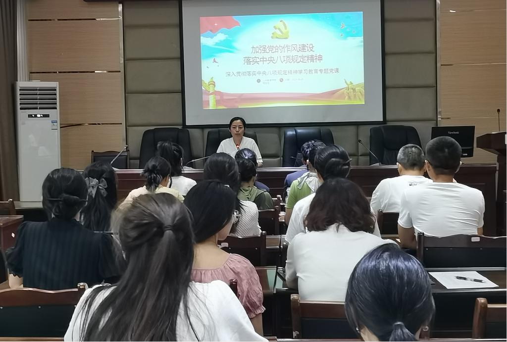 为持续深化全面从严治党,巩固拓展作风建设成果,引导全体党员干部教师深刻理解、准确把握并自觉践行中央八项规定精神,筑牢拒腐防变的思想防线,6月25日下午,公共教育学院党总支书记杜周军同志以“深入贯彻中央八项规定精神 以优良作风赋能育人育才”为主题,为学院全体党员讲授了一堂深刻而生动的专题党课。
