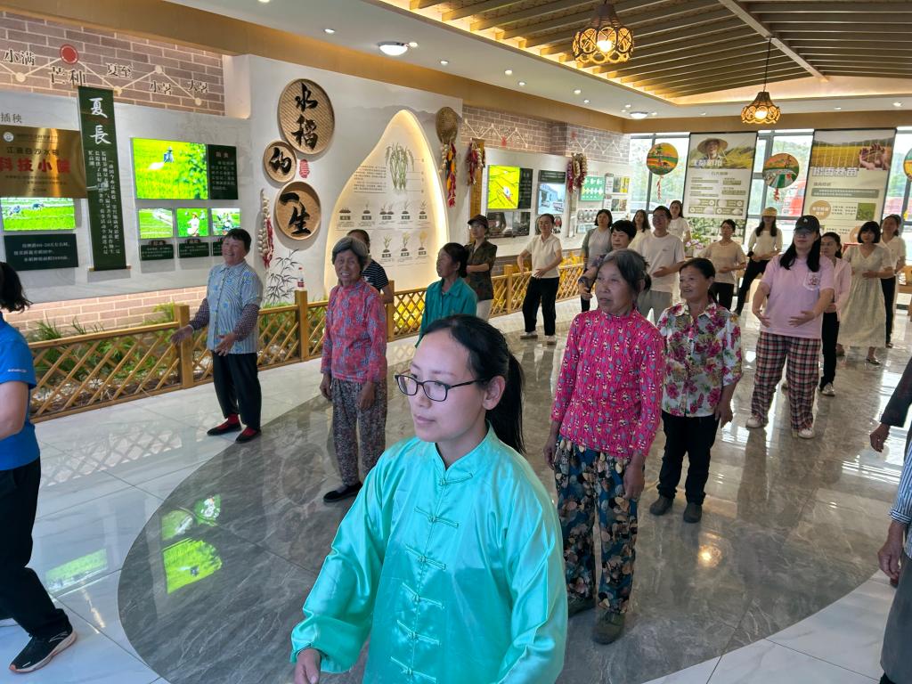 活动在白沙村党群服务中心举行。白沙村驻村第一书记陈希俊主持活动,白沙村党委书记刘定木、绵阳职业技术学院公共教育学院党总支书记兼院长杜周军分别致辞。双方围绕基层党建工作的热点、难点展开深入交流,并就未来在党员教育、志愿服务、文化共建等方面的合作达成共识。在健身气功教学环节,绵阳职业技术学院教师团队首先进行了精彩的健身气功展示,吸引众多村民驻足观看。随后,教师们详细讲解健身气功的养生原理、健康功效及练习方法,并现场示范、一对一指导,帮助村民掌握动作要领。村民们学习热情高涨,积极互动,并就日常锻炼中的疑问与教师深入交流。